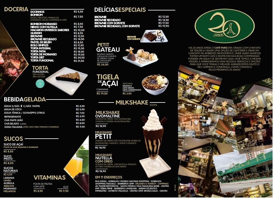 At the heart of its menu is the irresistible Torta Quatro Leites Trufada. This dazzling dessert features a delicate white mass layered with fresh strawberries, four types of cream, and luscious white chocolate mousse, all for just R$23.00. It’s a must-try for anyone with a penchant for desserts that melt in the mouth. Moreover, their expertly crafted Mocha (R$15.00) combines rich espresso with velvety steamed milk and decadent chocolate syrup. Whether you're in the mood for a refreshing Café Gelado or comforting Café Descafeinado, Café Paris-Campinas has options to tempt every palate.